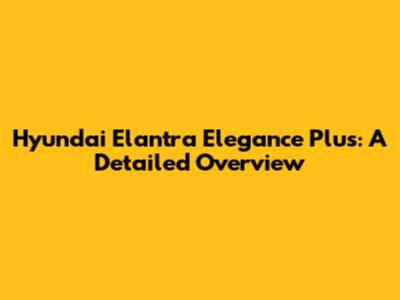 Hyundai Elantra Elegance Plus: A Detailed Overview