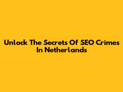 Unlock The Secrets Of SEO Crimes In Netherlands