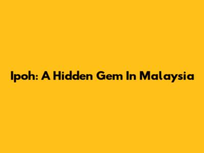 Ipoh: A Hidden Gem In Malaysia