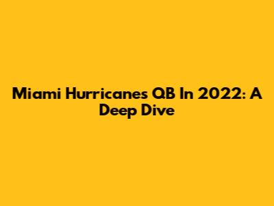 Miami Hurricanes QB In 2022: A Deep Dive
