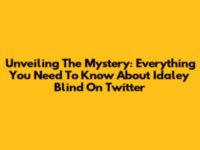 Unveiling The Mystery: Everything You Need To Know About Idaley Blind On Twitter