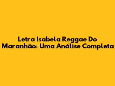 Letra Isabela Reggae Do Maranhão: Uma Análise Completa