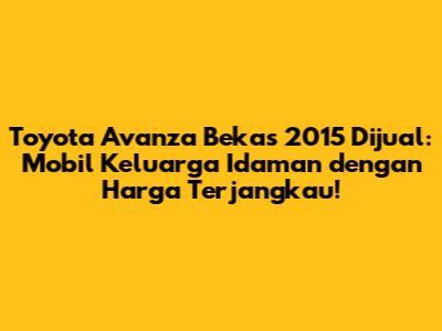 Guys, lagi cari mobil keluarga yang nyaman, irit, dan tetap gaya? Toyota Avanza bekas 2015 bisa jadi pilihan yang sangat menarik, lho! Apalagi kalau lagi dijual, wah ini sih kesempatan emas buat dapetin mobil impian dengan harga yang lebih bersahabat. Tapi, sebelum kalian langsung tergiur dengan iklan "Toyota Avanza bekas 2015 dijual", ada baiknya kita kulik dulu nih, apa aja yang perlu diperhatikan biar gak nyesel di kemudian hari. Yuk, simak ulasan lengkapnya!
