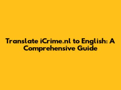 Understanding the Importance of Translating iCrime.nl