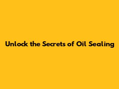 Unlock the Secrets of Oil Sealing